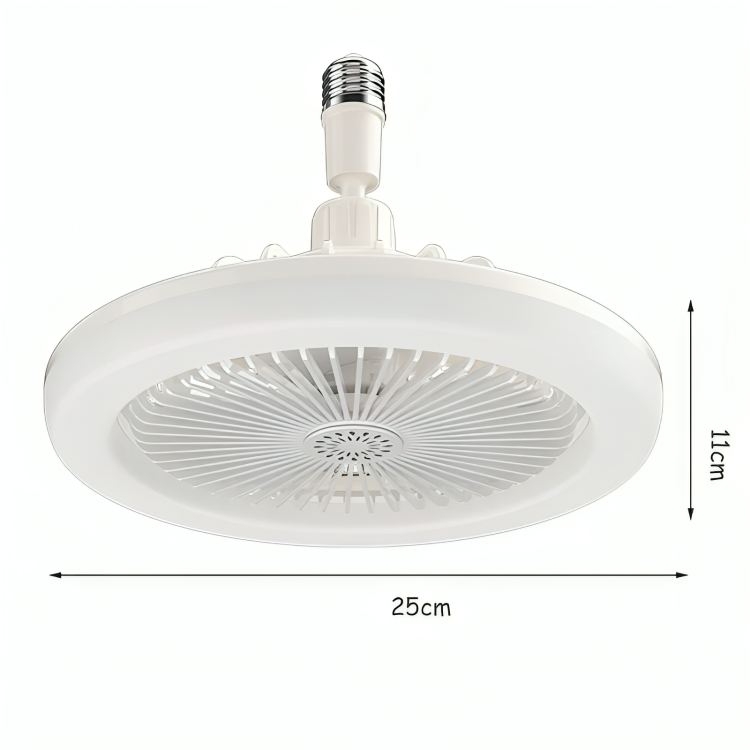 Dimensão: D250*110MM Tensão: 86-265V Potência Total: 20,5 W (Ventilador: 4,5 W) Material: Corpo em ABS Base da Lâmpada: E27 Cor: Branco Modos de Iluminação: Luz branca, quente e natural Velocidades do Ventilador: Três opções